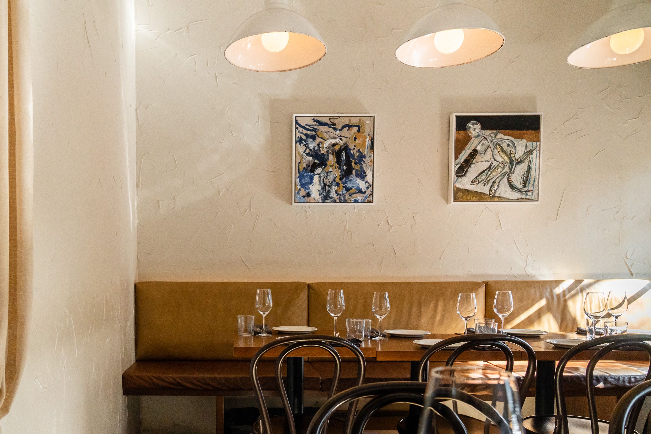 The space is surrounded by beautiful artworks curated by Amy Finlayson, including pieces from Gabrielle Penfold, Alison Mackay and Amy herself.