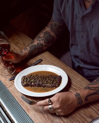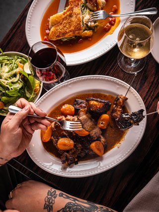 Dappled with sunlight by day, and shimmering candlelight by night, Dear Sainte Éloise’s Sunken Dining Room can be booked for semi-exclusive use, with guests surrounded by beautiful artworks. Groups of up to 10 can be accommodated on one table. Or, take the whole room for a larger celebration, comfortably seating up to 20 people.