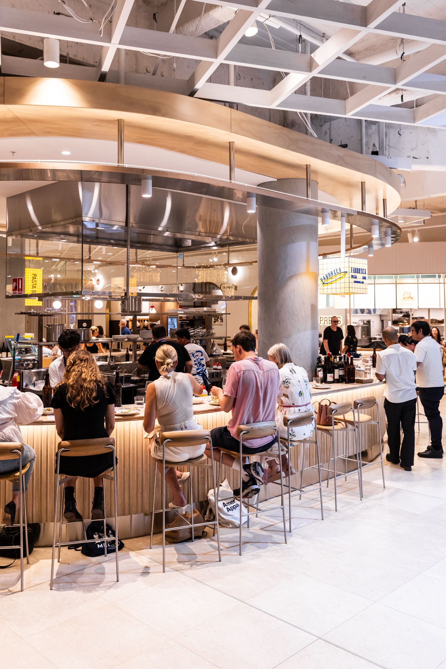 And so Fabbrica (‘factory’ in Italian) was born on Sydney’s King Street. The pasta extruder became the heart of the concept, producing traditional Italian shapes on site, with a selection of innovative sauces, snacks, freshly baked bread, produce and wine, ready to take home or polish off on the spot.