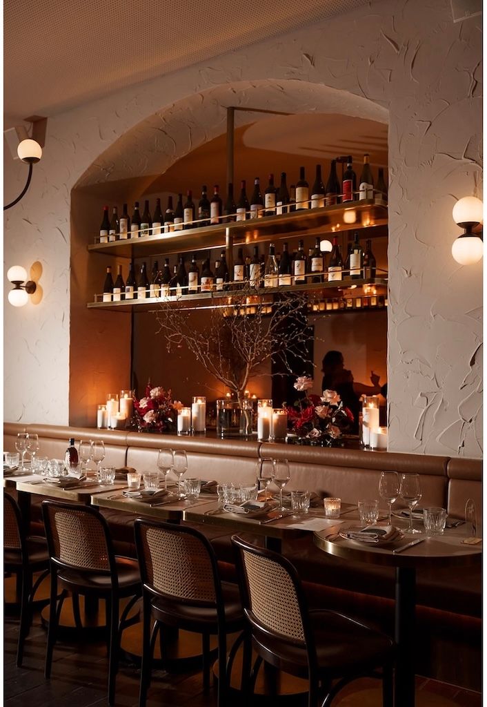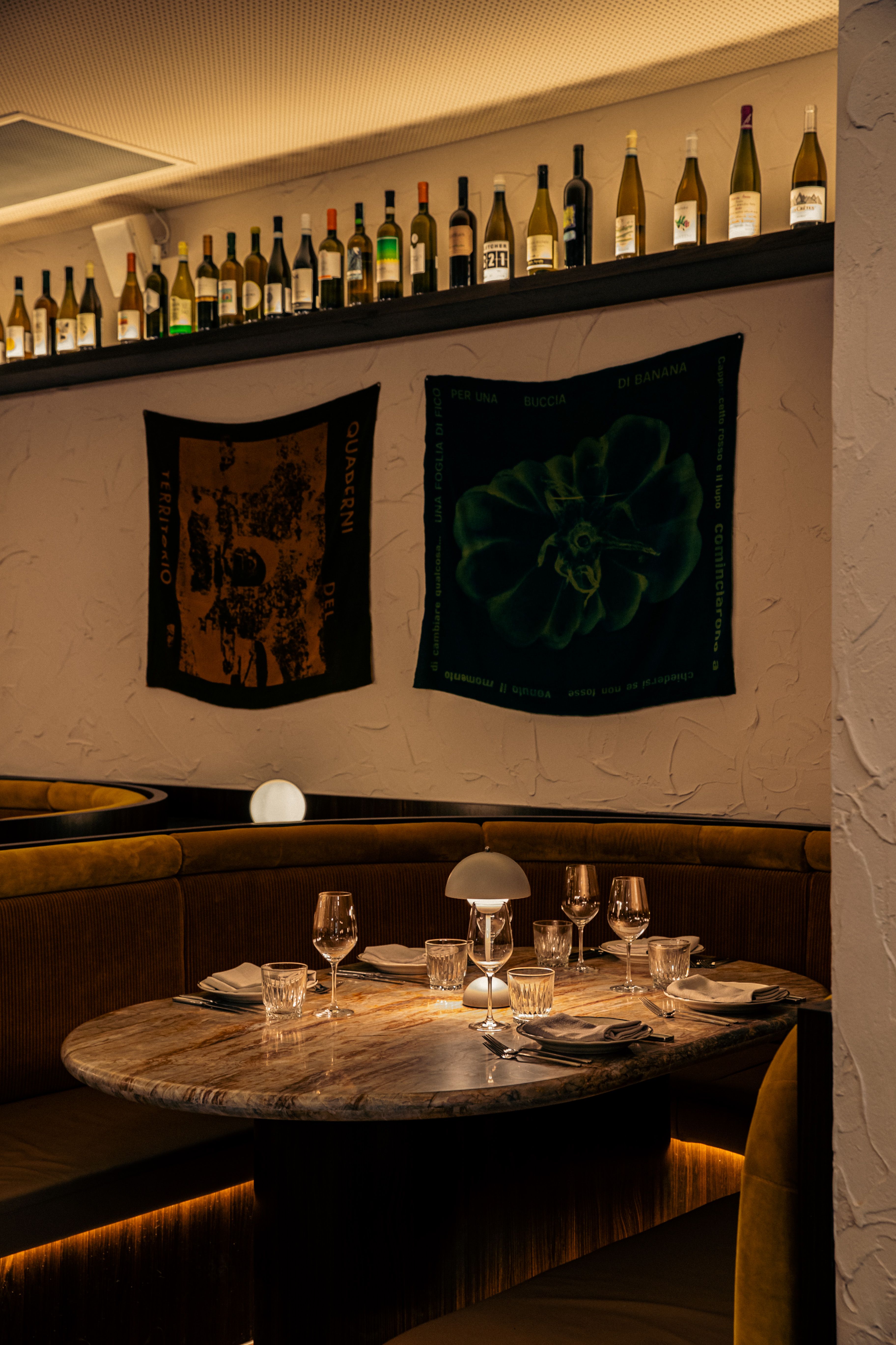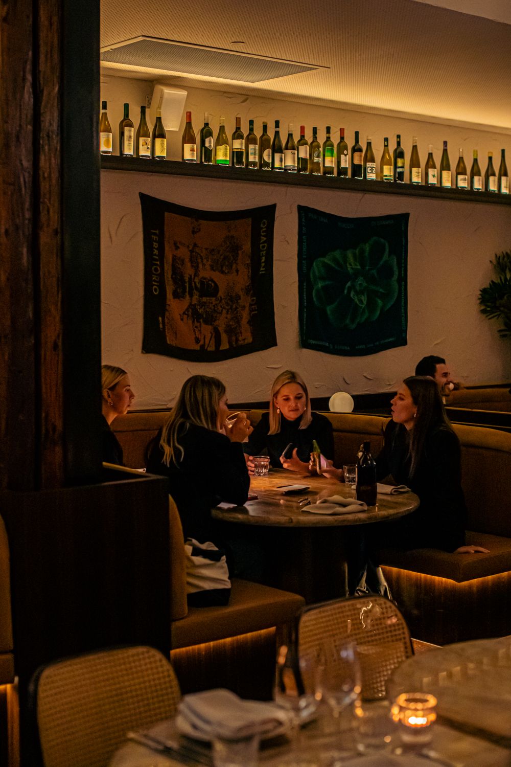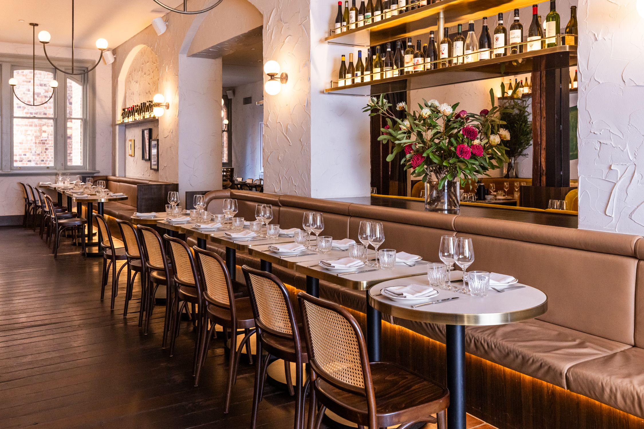 Behind the leather curtains, you’ll find our private dining room, seating up to 22 people along one long table, or divide the private dining room in half with a swish of the curtains, for an intimate table of 12. Elsewhere in the restaurant, groups can be accommodated throughout the venue, settled in booths and banquettes or along adjoining tables.